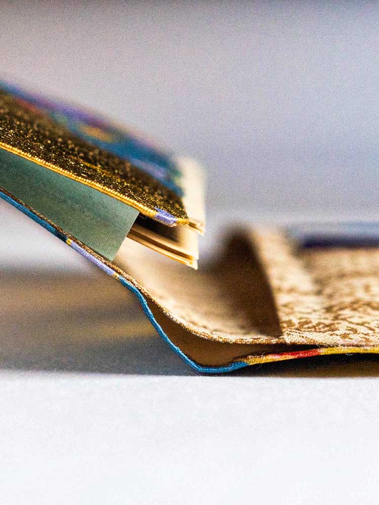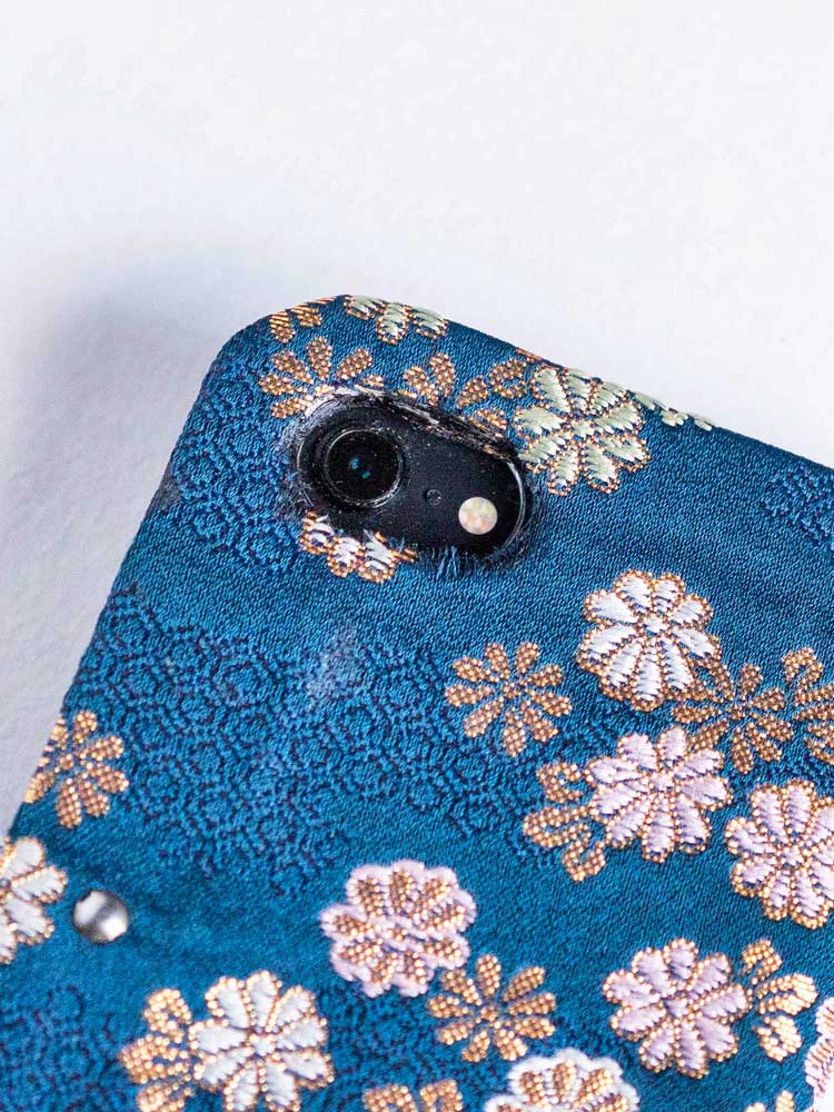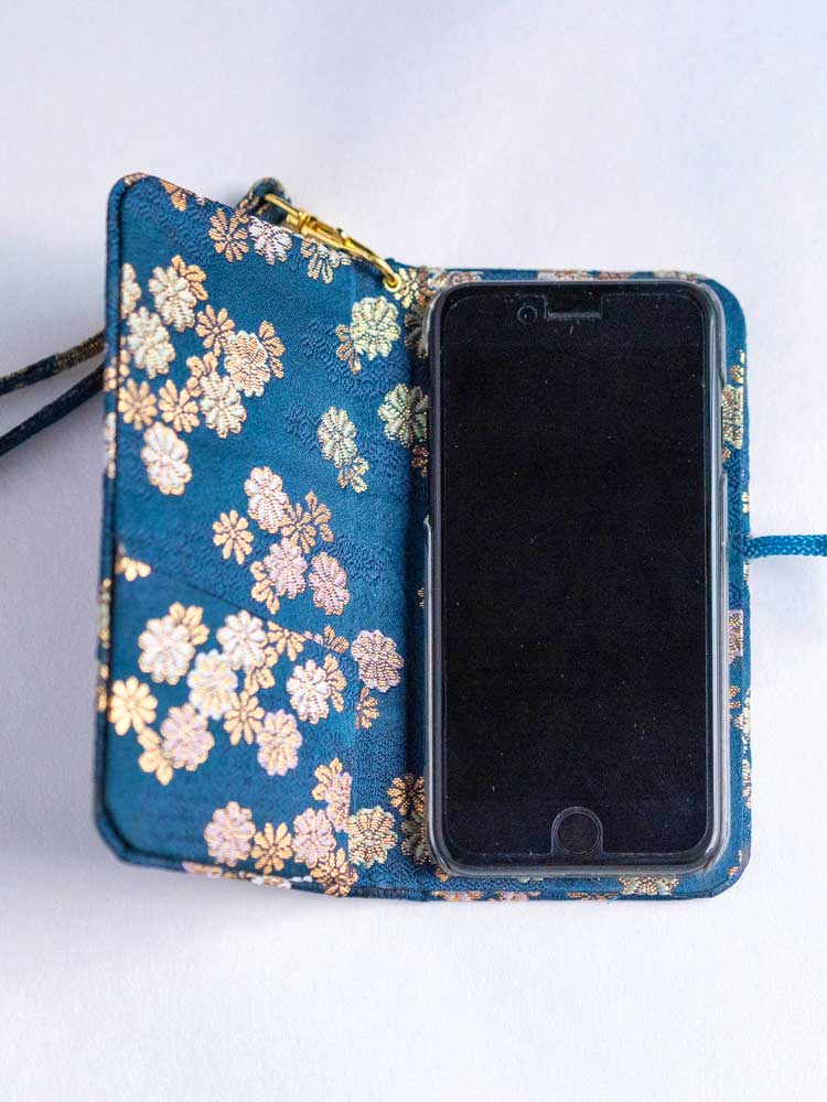 - 各商品の内側(スマホケースや、札入れを開いた内側)の生地は、掛軸・和額専用の『裂地(きれじ)』使用しています。