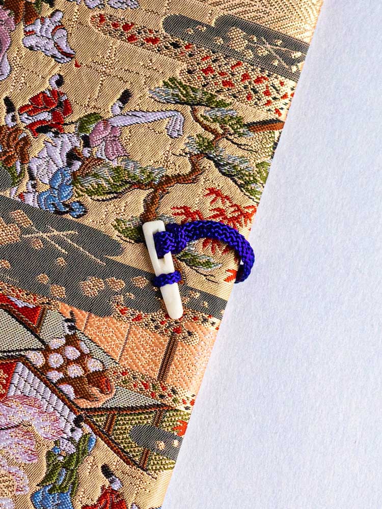 巻物制作に利用する小鉤(コハゼ)を留め具として利用します(プラスティック製です)。